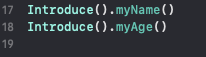 다음과 같이 Introduce 구조체에 extension을 활용하여 myName()이라는 함수와 myAge()라는 함수를 확장하였다.