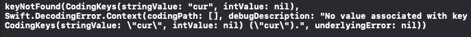 위 사진이 Codable하고자 하는 JSON 데이터인데 API 변수명과 다른 변수명을 구조체에 작성하여 위와 같은 오류가 발생 한 것이였다.